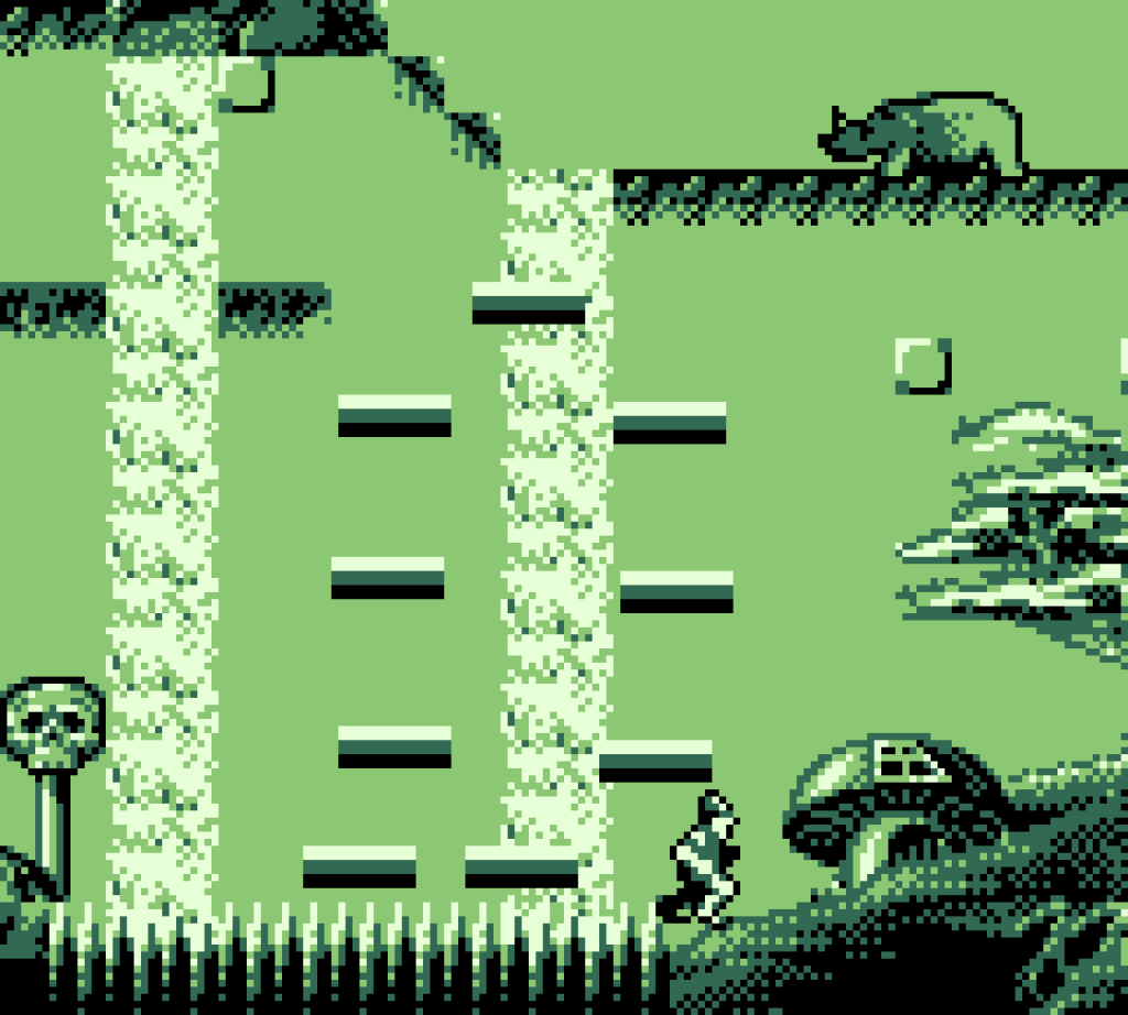 Dragon’s Lair is known for its interactive film iterations. These games included Disney-like scenes and were popular in arcades before being ported to almost every home console of the time. However, Dragon’s Lair: The Legend is a completely different kind of game. The Legend is a platformer in the vein of Rayman (PS1). The hand-drawn impressive scenes of other Dragon’s Lair games play no part in Dragon’s Lair: The Legend for Game Boy. The ‘interactive movie’ iterations had gameplay where the player was on rails and included quick time events. Dragon’s Lair: The Legend in comparison has platforming and no interactive scenes or quick-time events. Both the A and B buttons make the character, Dirk the Daring, jump. There’s no attack button and no enemies.