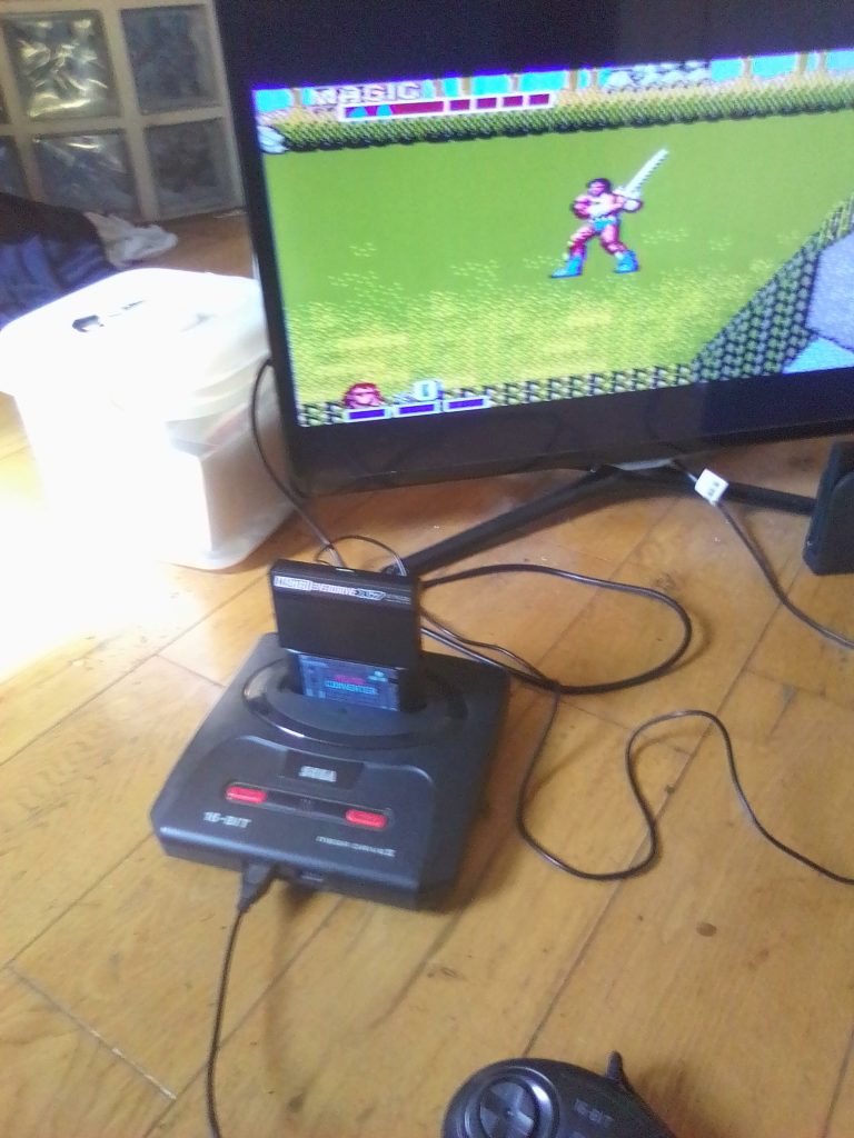 Speaking of the Mega Drive, as it is backwards compatible with the Master System (however uses different-shaped cartridges), the Master Everdrive will work in a Mega Drive/ Genesis if you have a cartridge converter such as the official Power Base Converter. As you can see in my images, I’m reviewing the Master Everdrive using a Sega MegaDrive 2 and a third-party cartridge converter. However, the one drawback in using this setup is that if you use a Genesis/Megadrive, you won’t have access to soft boot back to the main menu, and can’t use save states. This just means that to play a new ROM, you need to restart the system each time. This was a minor inconvenience, and it didn’t interrupt my enjoyment of playing games like Golden Axe, R-Type, and the unlicensed Super Tetris (more on this later in the article).