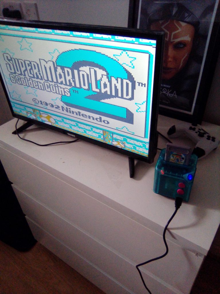 My fan translation of Star Ocean: Blue Sphere, I’m happy to report, runs well, and saves without a problem. That game is a unverse in itself, and despite its limitation is very ambitious. Metal Gear Solid is another game with ambition. My reproduction cart seems to run, but I didn’t play it enough to learn if it saved correctly or not. It might be a good game, I’ve just never found the need to invest in any game from the series. Next, I tried My color ROM hack of Super Mario Land 3: Wario Land. It booted fine and runs in full color! This was a surprise as the color ROM hack of its predecessor didn’t load properly. It makes me wonder, if Super Mario LAad 3 would have loaded correctly if I had played the legit version of Super Mario Land 3 prior (like what happened with Super Mario Land 2).